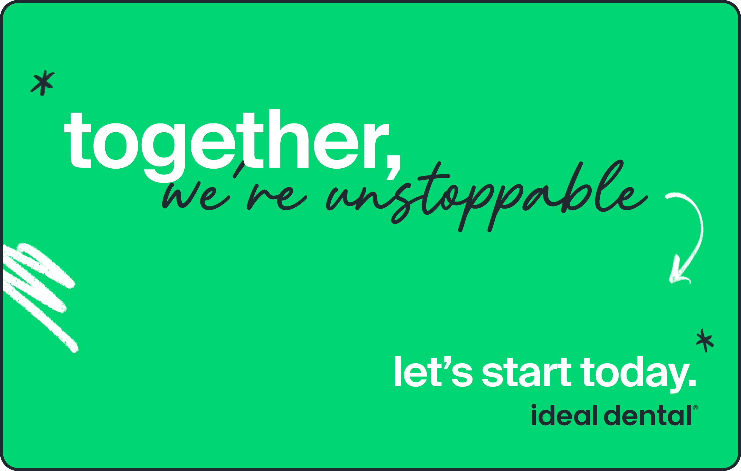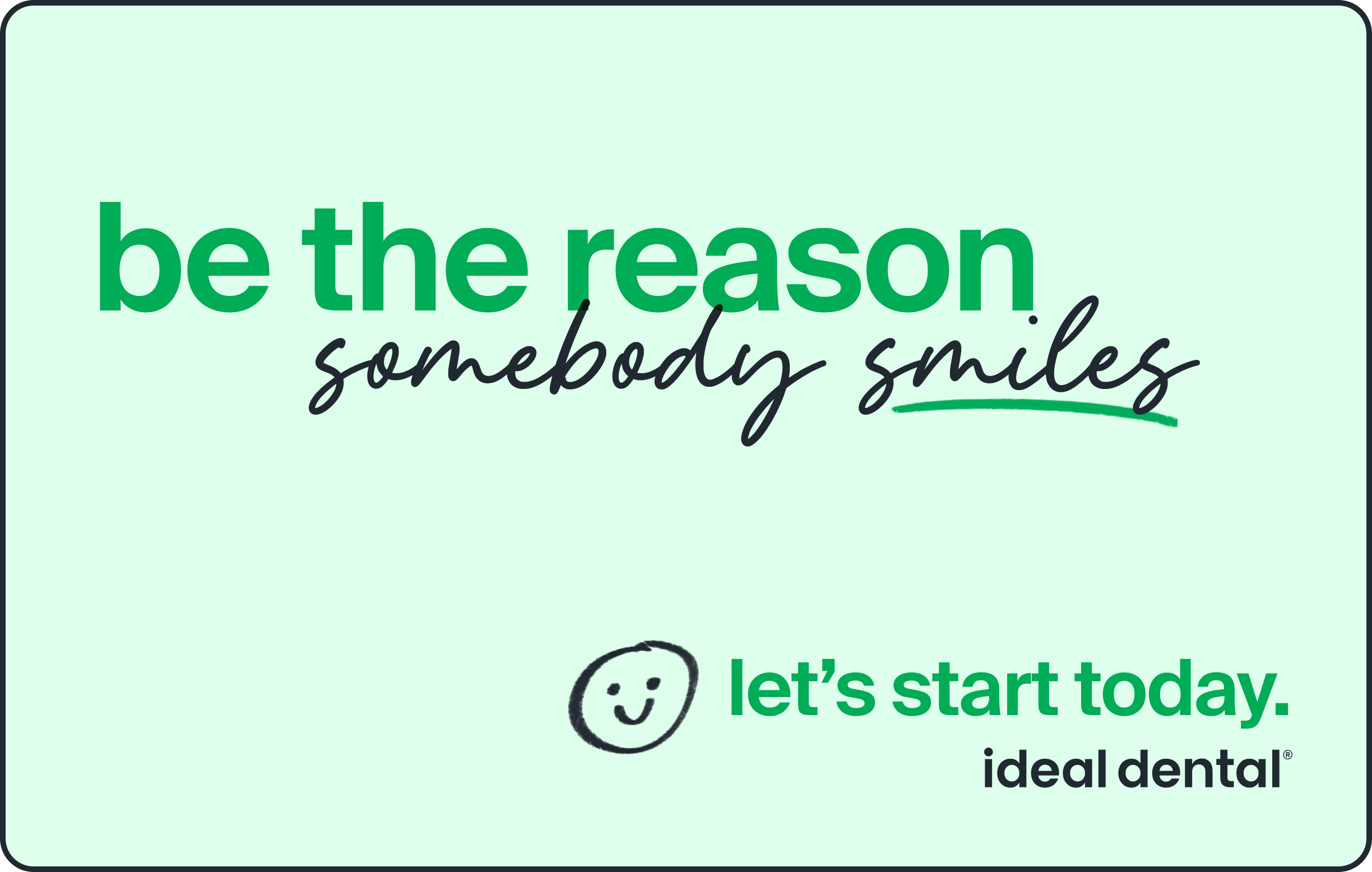Ideal Dental also needed an internal campaign to support team morale and reinforce the same empathetic spirit we were communicating to patients. I extended the “Let’s start today” platform inward, creating a set of messages that celebrated care, encouragement, and the everyday impact team members have on their patients’ lives.